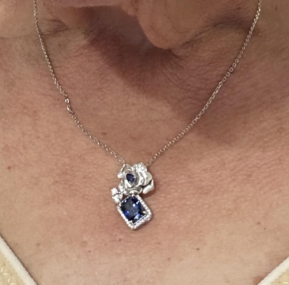 This necklace is beautiful. Sapphires have always been one of my favorite gem stones. This necklace takes me back to one of the first sets of jewelry my late husband gave me about 40 years ago now. It comes in a very nice lighted boxes. If I were going to give this necklace away, StiloVero also provides a very nice gift bag. Nope, this necklace is staying with me. I like the idea of lab grown gems. I believe they are more ethically sourced over mined gems.