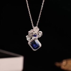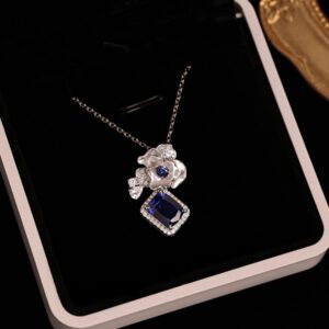 This Camellia Necklace is an absolutely exquisite piece of jewelry that truly stands out. It is beautiful. The flower pendant design is delicate and beautifully crafted, and the blue sapphire at its center is stunning, with a vibrant color and brilliant sparkle. The thick white gold plating gives it a luxurious, high-end finish that looks far more expensive than it is. This piece has added an elegant and sophisticated touch to my style.