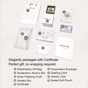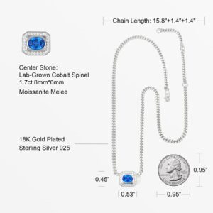 This necklace is absolutely gorgeous and the presentation is nothing short of spectacular and exemplary! This beautiful necklace arrives in a lighted git box along with gem certification, a cleaning cloth, fabric gift bags, an airtight jewelry holder, a gift card and paper gift bag, all in a large, sturdy and lovely gifting box. The necklace looks exactly in person as it does in the images, and the cobalt spinel is quite fetching and is heavily faceted to catch the light. The moissanite halo adds lots of sparkle and a gentle fire accent to spinel, and gives the pendant an ethereal feel. The chain is solid, durable, and comfortable, and the Cuban style suits the fashion of the pendant wonderfully. The lobster clasp is sturdy and easy to work, and is stamped with the sterling hallmark. The chain has three loops to hook the clasp to shorten it as desired, and I'm' wearing it at its longest in the pic. The stones' settings are very secure and well formed, and I love the oval bezel setting of the spinel. I do find that the pendant seems to be a bit too lightweight for the weight and thickness of the chain. The pendant tilts askew easily, the chain sometimes scoots up and around on my clavicle, and the pendant would optimally be larger by at least half in order to stay put and help keep the chain sitting straight. I had to adjust the necklace several times to get it just right for the pic of me wearing it. Also, my particular preferences lean to thinking that the pendant is a little undersized in relation to the width of the chain, and I think that a somewhat larger stone and setting would have a more balanced appearance. This necklace is accurately represented in the images on the model and in the dimension description. This necklace is made with exceptional craftsmanship, it seems as durable as it is gorgeous, and the presentation is superb! 15.8"+2.8" Cuban Chain Necklace for Women 1.5ct Certified Lab-Grown Cobalt Spinel with 26x 1.3mm Moissanite in Halo Setting (0.26ctw), Thick 18K White Gold-Plated 925 Sterling Silver Ideal for Engagement, Anniversary & Birthday