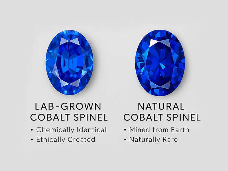 Lab-grown cobalt spinels are created by replicating the natural formation process.They have the same composition and properties as natural cobalt spinels, offering exceptional brilliance at a lower cost—while being sustainable and ethically sourced.
