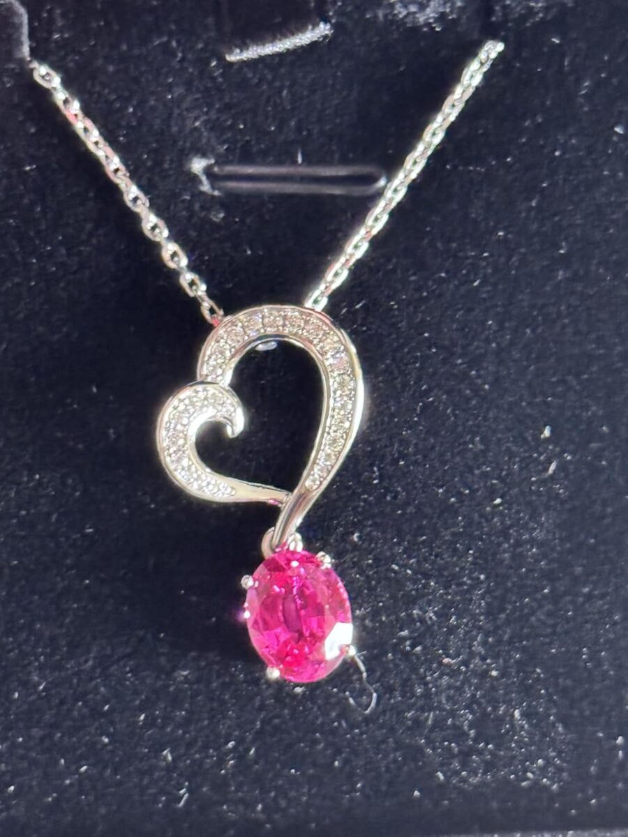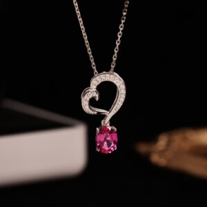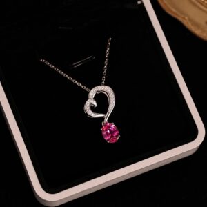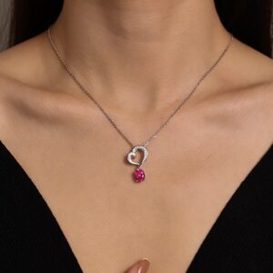 Every woman carries a little girl with a rose-tinted dream. This necklace is born for that dream—its heart-shaped frame, adorned with pure white moissanite, symbolizes love and eternity. The suspended hot pink sapphire adds a touch of fiery romance, lighting up your heart.