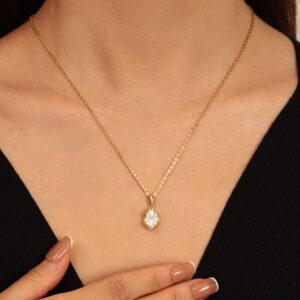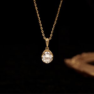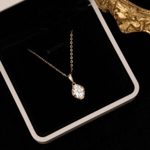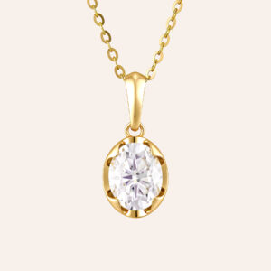 This necklace was born to honor that—an inner gleam, quietly held, never dimmed. Encased in smooth golden curves, the moissanite shines not with noise, but with knowing—a glow of strength, clarity, and calm.