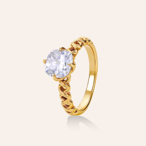 The twisted gold-plated shank draws inspiration from Florentine ironwork, offering texture, grace, and enduring strength.