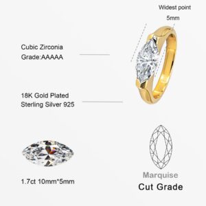 Marquise-Cut Ring for Women, Thick 18K Gold-Plated on 925 Sterling Silver for Long-Lasting Shine Ideal Gift for Engagement, Anniversary, or Birthday