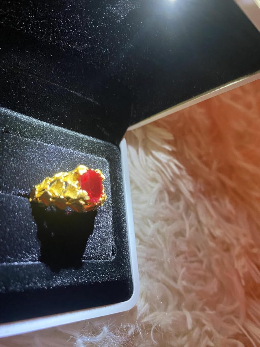 The ring itself is stunning. The ruby is vibrant, and the gold finish gives it a luxurious feel. It doesn’t have that typical look of most gold-plated jewelry, it feels premium. It fits perfectly, is very lightweight, and my wife says it’s extremely comfortable to wear. It looks beautiful on her hand and really catches the light.