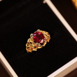 This StiloVero ring is quite a beautiful piece – the ruby is the focal point, and being lab-grown means the color is really striking. I appreciate the detail that’s gone into the ginkgo leaf design – it’s just a really pretty, flowing shape. The gold plating makes it glow, and the packaging makes it feel like a special gift. Considering the materials and the careful presentation, this ring looks exquisite.